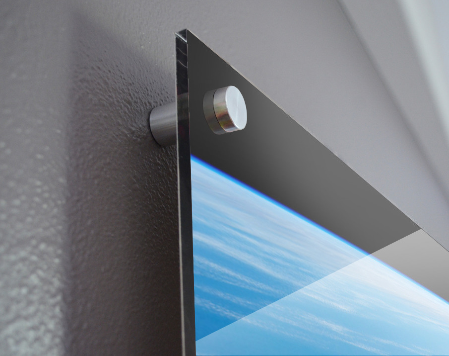 Printed to the edge - Ready to hang - provided with 4 premium polished aluminum stand off ( wall screws and mounting hardware provided )