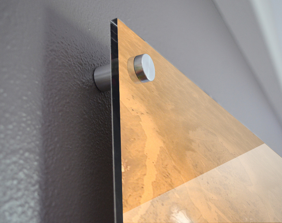 Printed to the edge - Ready to hang - provided with 4 premium polished aluminum stand off ( wall screws and mounting hardware provided )